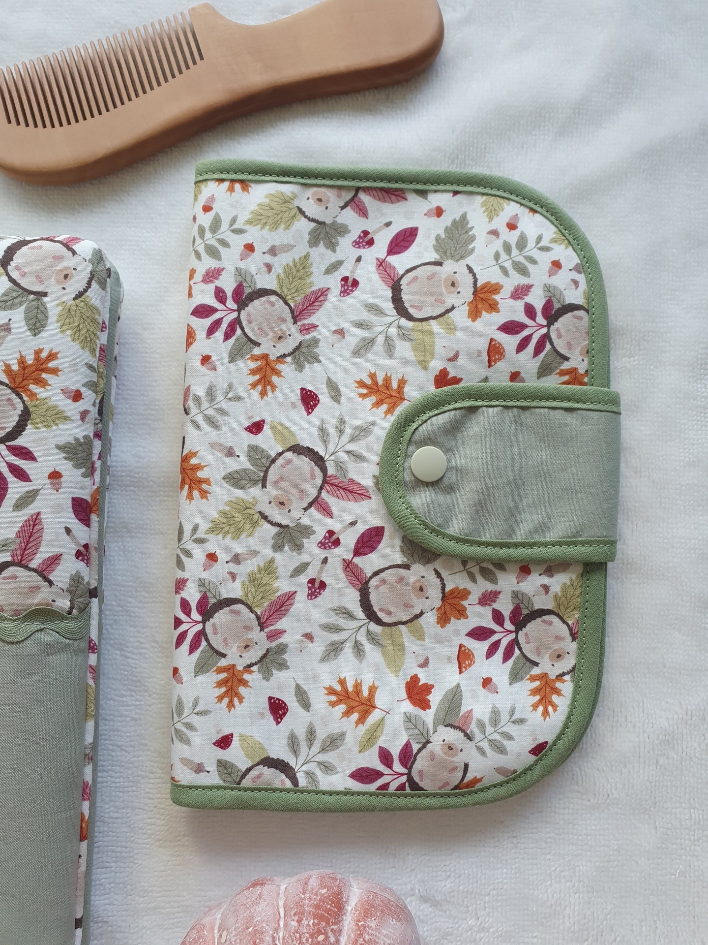 Porta documentos ouriços 18,00 € Desconto de %. Partilhar O produto encontra-se sem stock. Porta documentos com fecho com mola de pressão, em tecido 100% algodão com certificado OEKO-TEX 100. Com 2 bolso laterais grandes e 3 bolsos pequenos para cartões. Compatível com boletim do bebé português. Medidas aproximadas: 22cm x 15cm. Cores: verde seco, mostarda