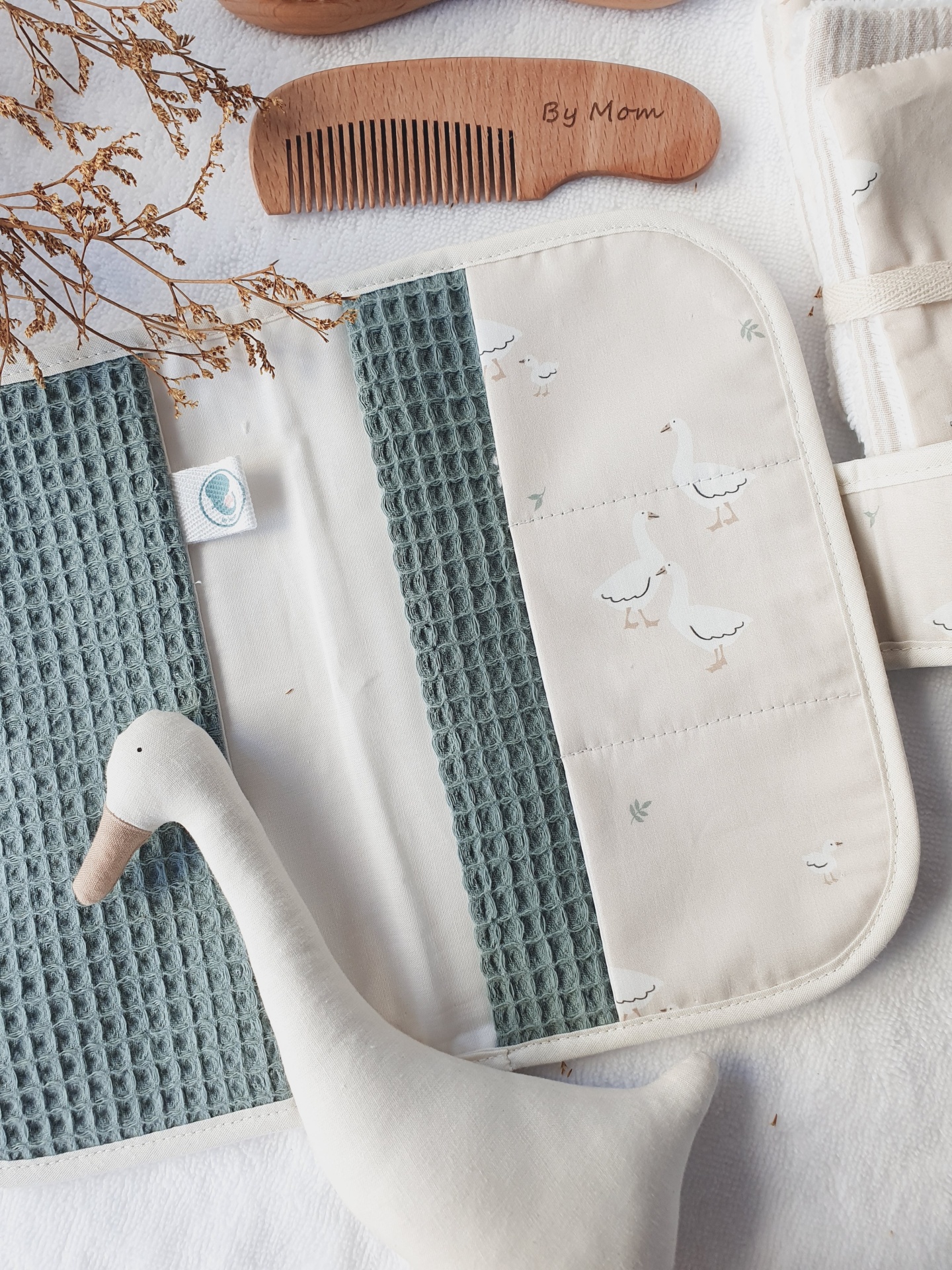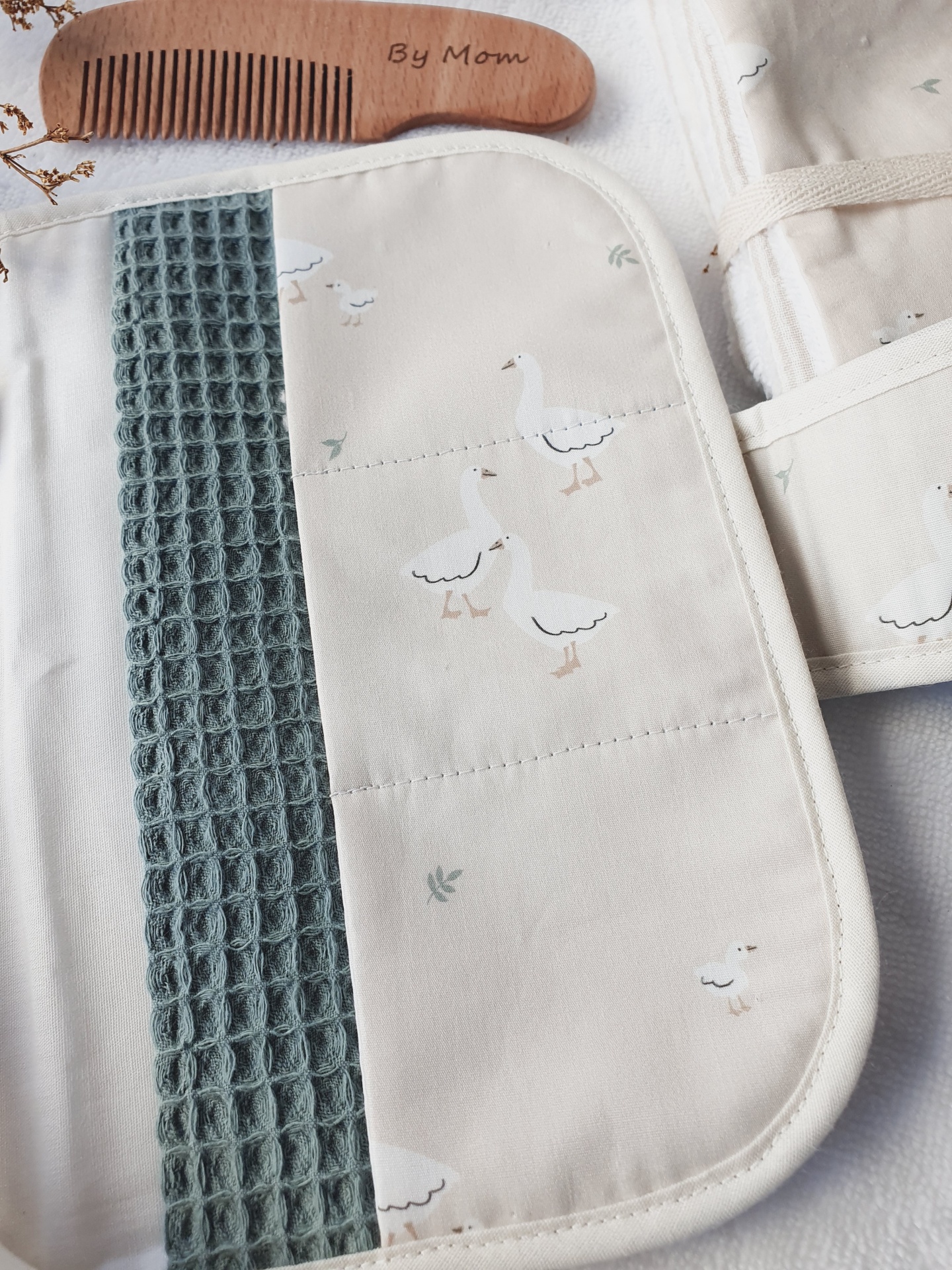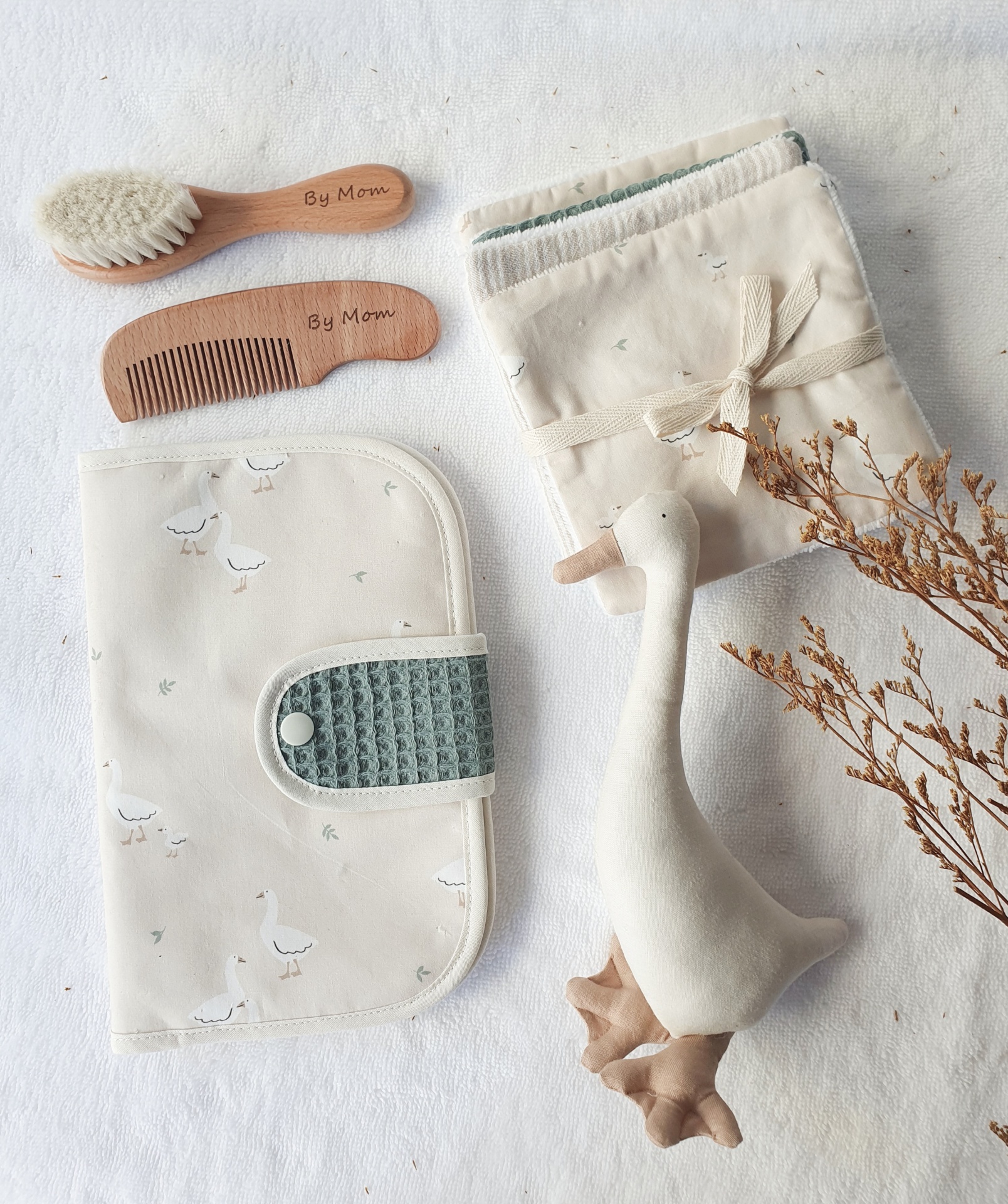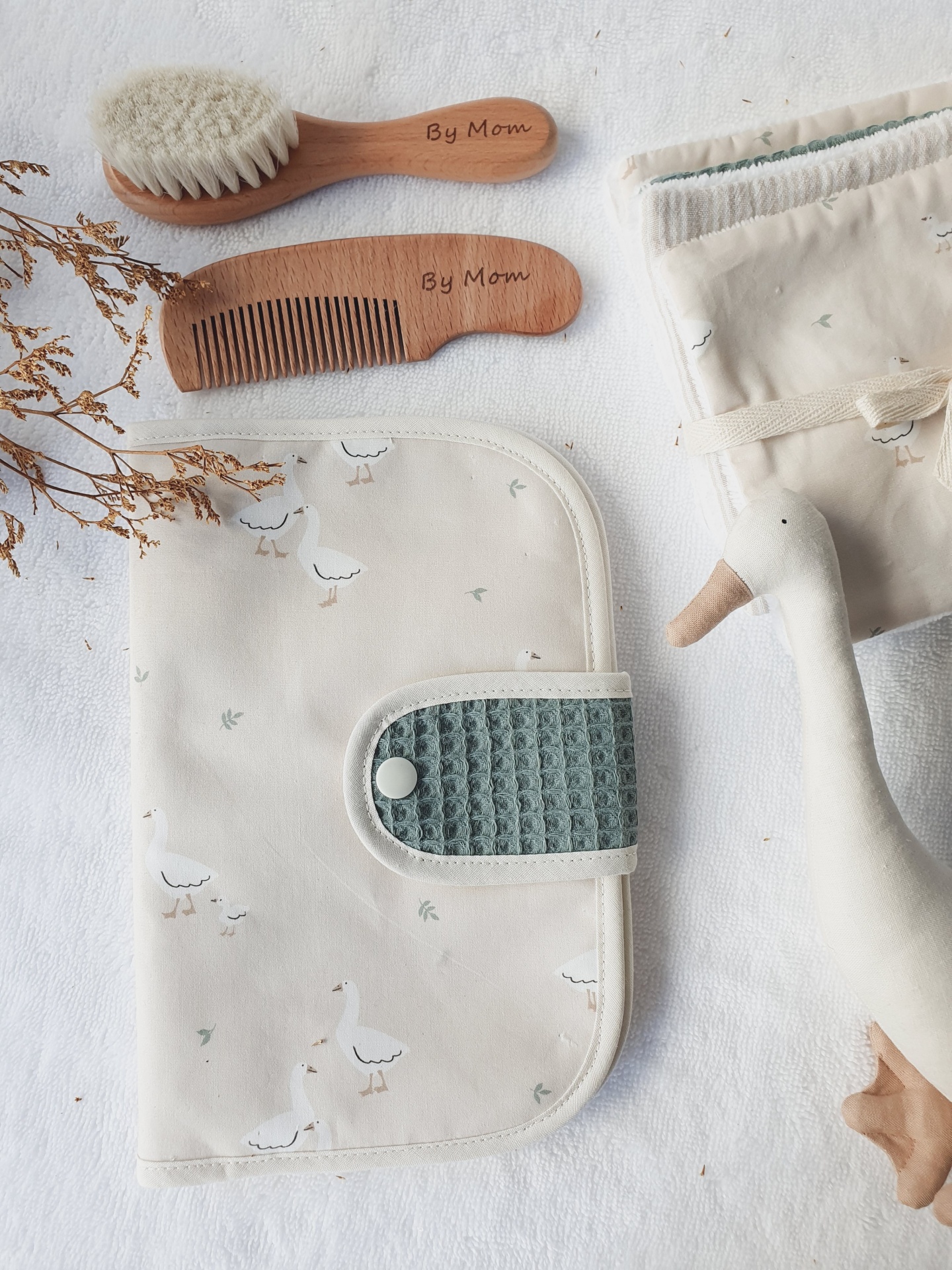 Porta documentos patinhos 20,00 € Desconto de %. Partilhar O produto encontra-se sem stock. Porta documentos com fecho com mola de pressão, em tecido 100% algodão com certificado OEKO-TEX. Com 2 bolso laterais grandes e 3 bolsos pequenos para cartões. Compatível com boletim do bebé português. Medidas aproximadas: 22cm x 15cm. Cores: castanho, cru.