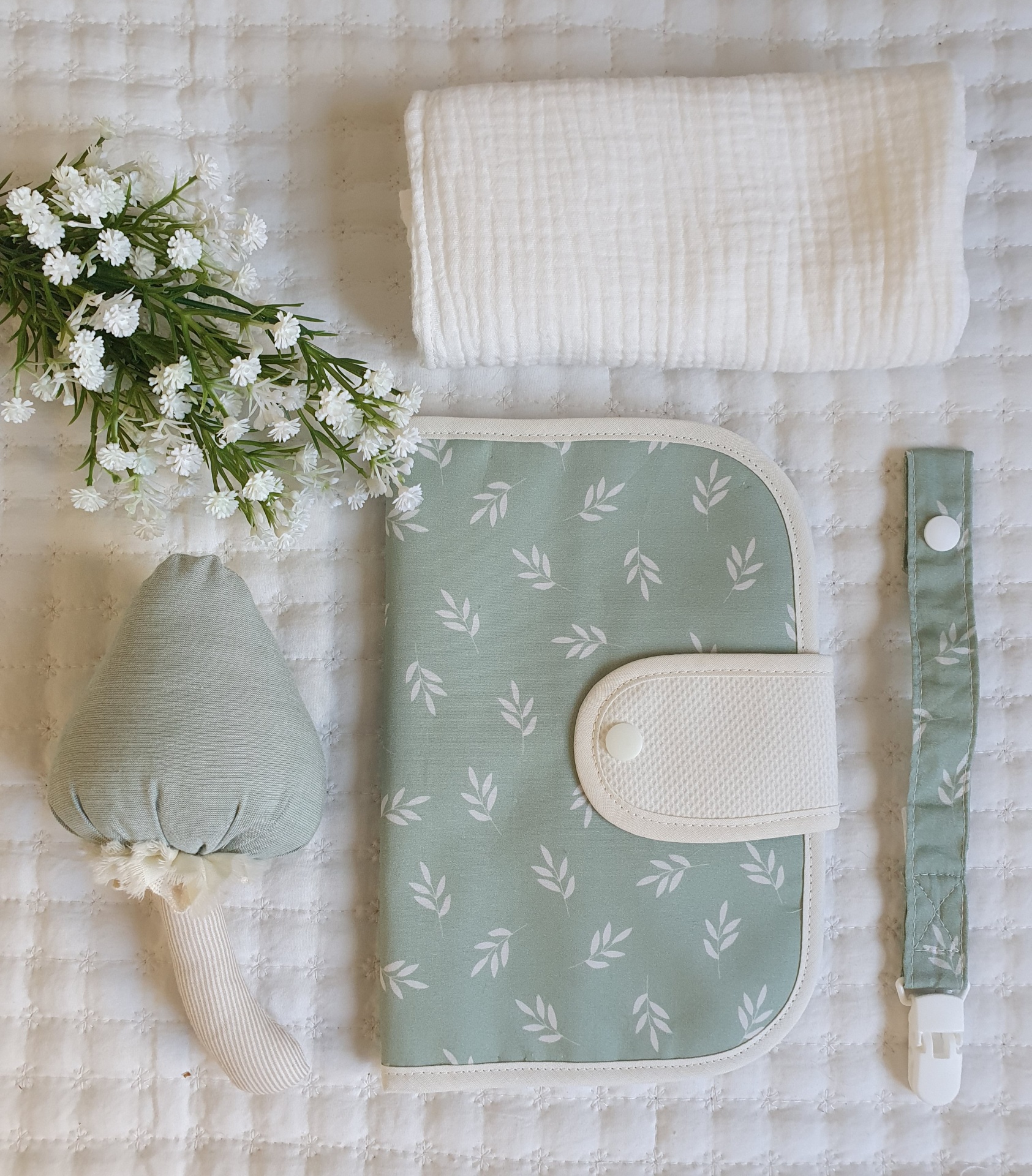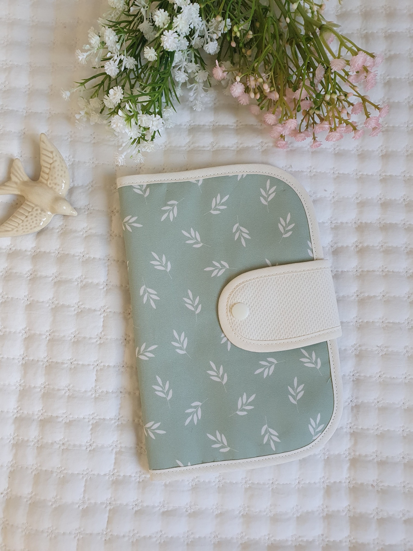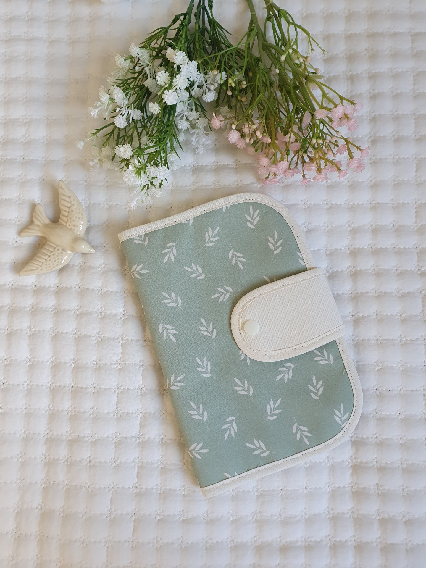Porta documentos Primavera Verde seco 18,00 € Desconto de %. Partilhar O produto encontra-se sem stock. Porta documentos com fecho com mola de pressão, em tecido 100% algodão com certificado OEKO-TEX 100 e piquet 100% algodão cru. Com 2 bolso laterais grandes e 3 bolsos pequenos para cartões. Compatível com boletim do bebé português. Medidas aproximadas: 22cm x 15cm. Cores: verde, cru.