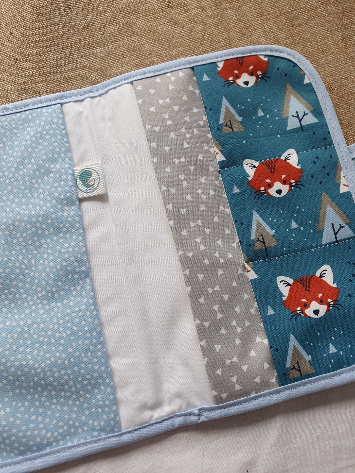 Porta documentos raposas em azul 15,00 € Desconto de %. Partilhar O produto encontra-se sem stock. Porta documentos com fecho com mola de pressão, em tecido 100% algodão com certificado OEKO-TEX 100. Com 2 bolso laterais grandes e 3 bolsos pequenos para cartões. Compatível com boletim do bebé português. Medidas aproximadas: 22cm x 15cm. Cores: azul claro, azul petróleo, tijolo