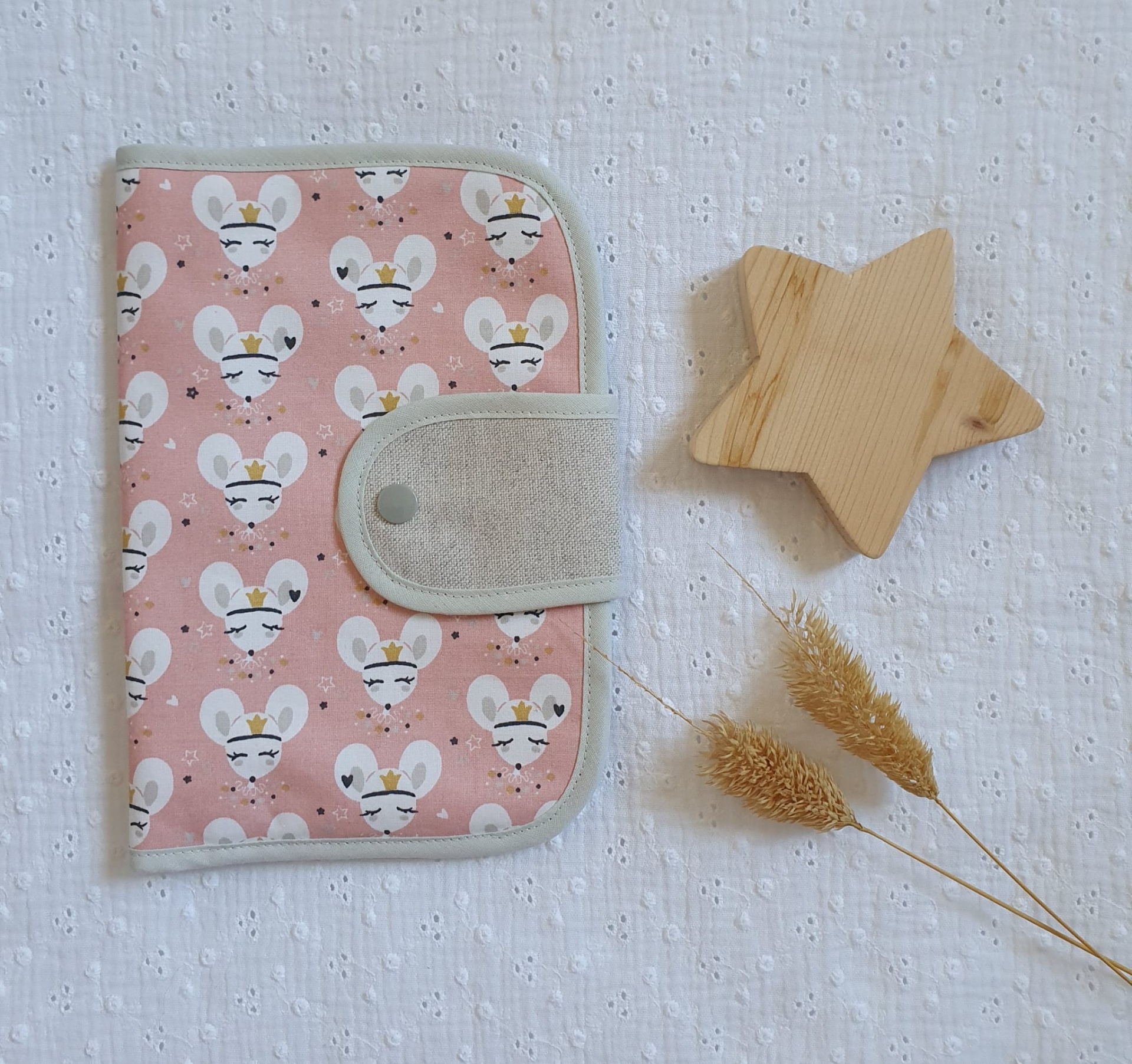Porta documentos ratinhas 12,00 € 15,00 € Desconto de 20%. Partilhar O produto encontra-se sem stock. Porta documentos com fecho com mola de pressão, em tecido 100% algodão com certificado OEKO-TEX 100. Com 2 bolso laterais grandes e 3 bolsos pequenos para cartões. Compatível com boletim do bebé português Medidas aproximadas: 22x15cm