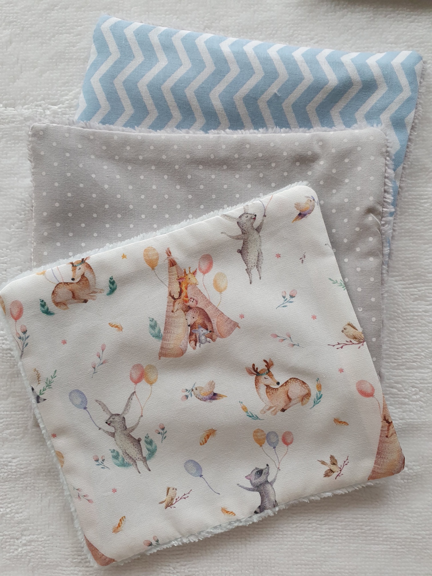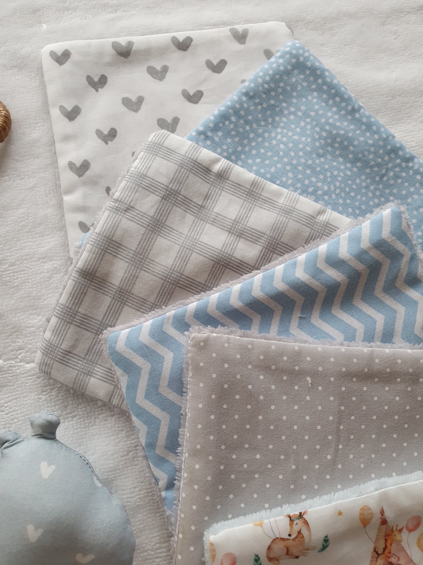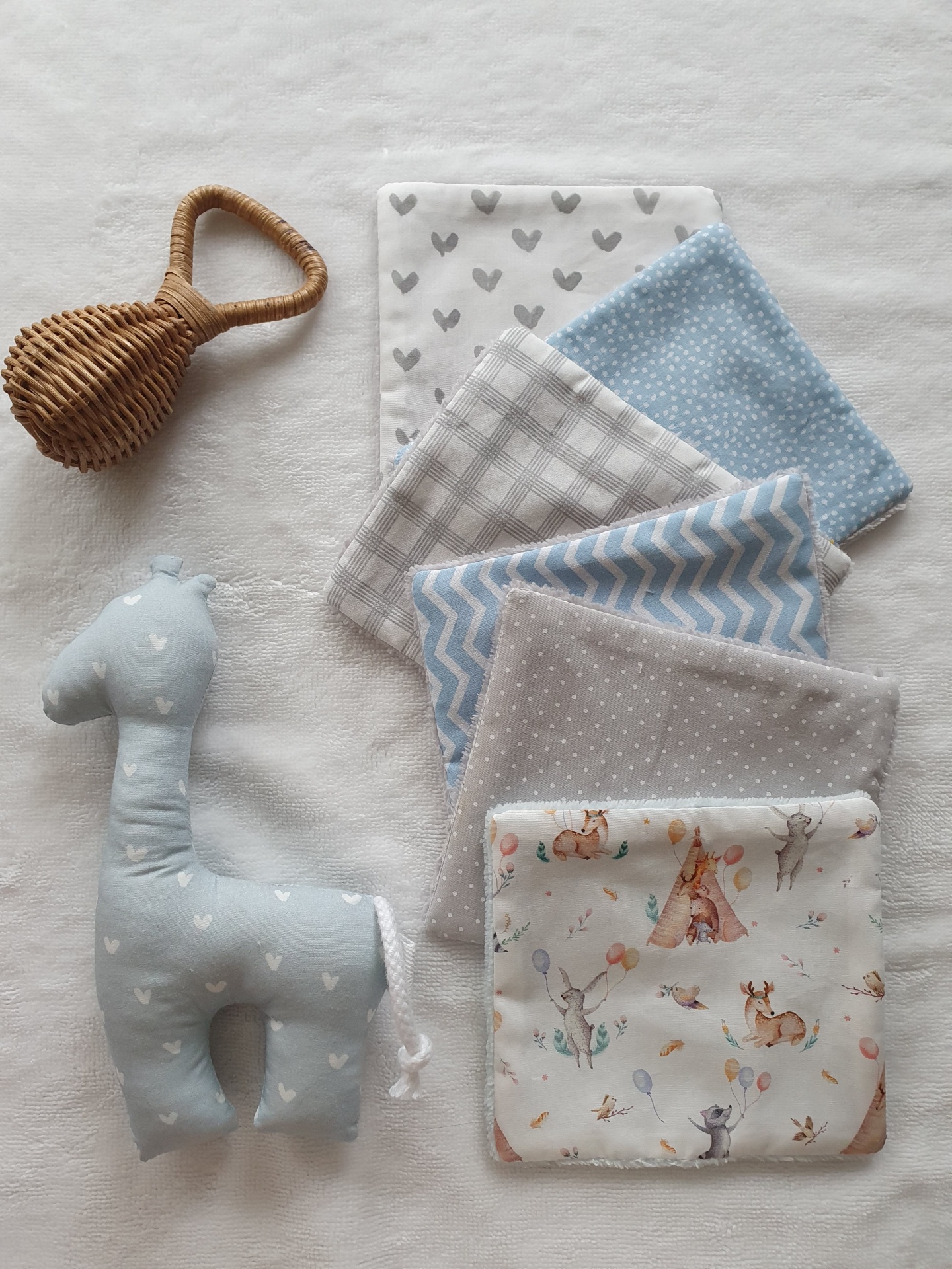 Toalhitas pack 2 14,50 € Desconto de %. Partilhar Comprar Contactar Conjunto de 6 toalhitas em tecido 100% algodão e tecido turco de bambu super macio e absorvente. Muito úteis para deixar o rabinho sempre seco e limpo, evitando as assaduras. Duráveis e reutilizáveis, são um produto sustentável e ecológico. Medidas 13x13cm cada. Também podem ser usadas por vocês, mamãs. Muito boas para limpar o rosto e fazerem a vossa rotina de limpeza da pele. Cores: azul, cinza