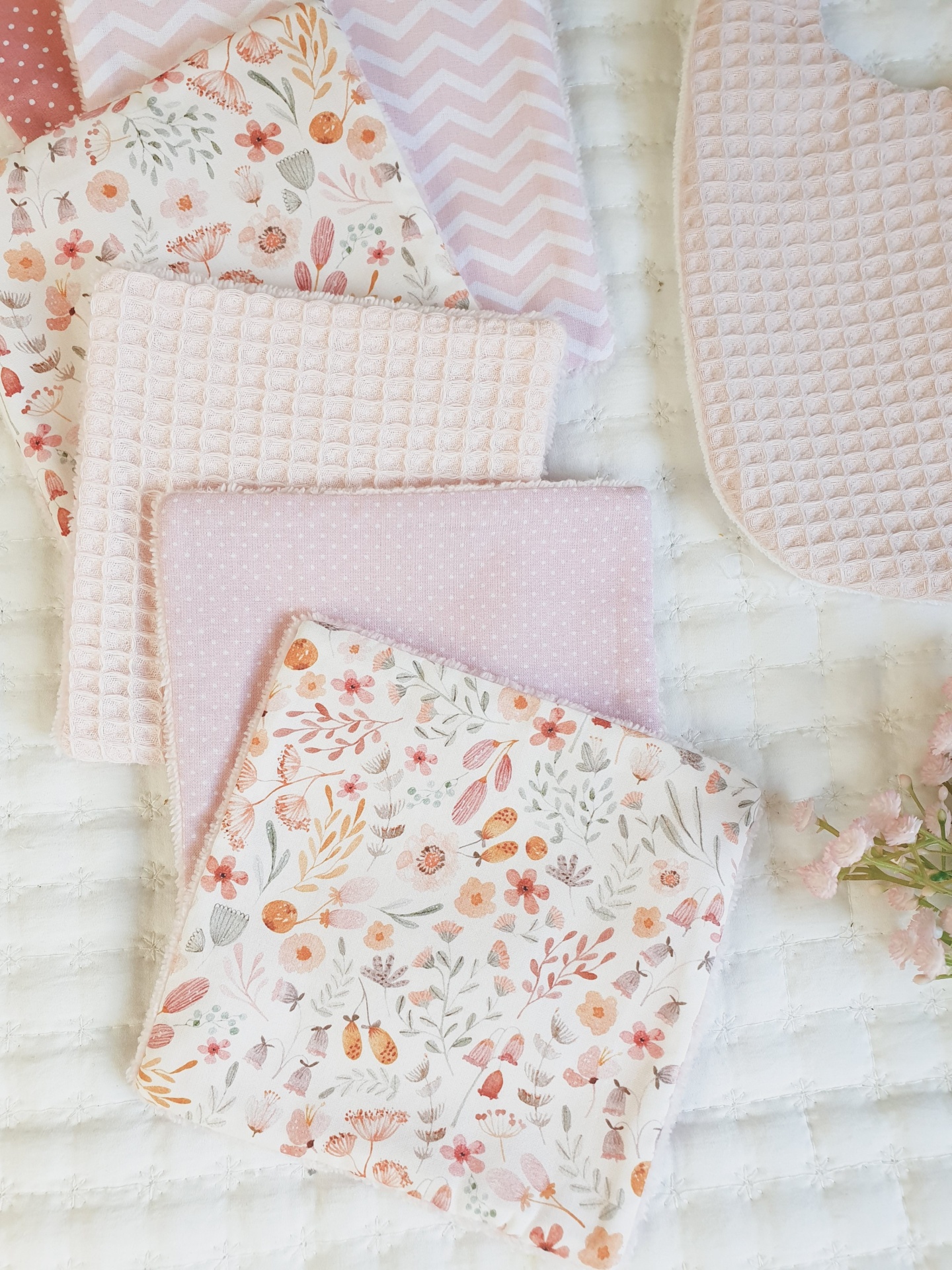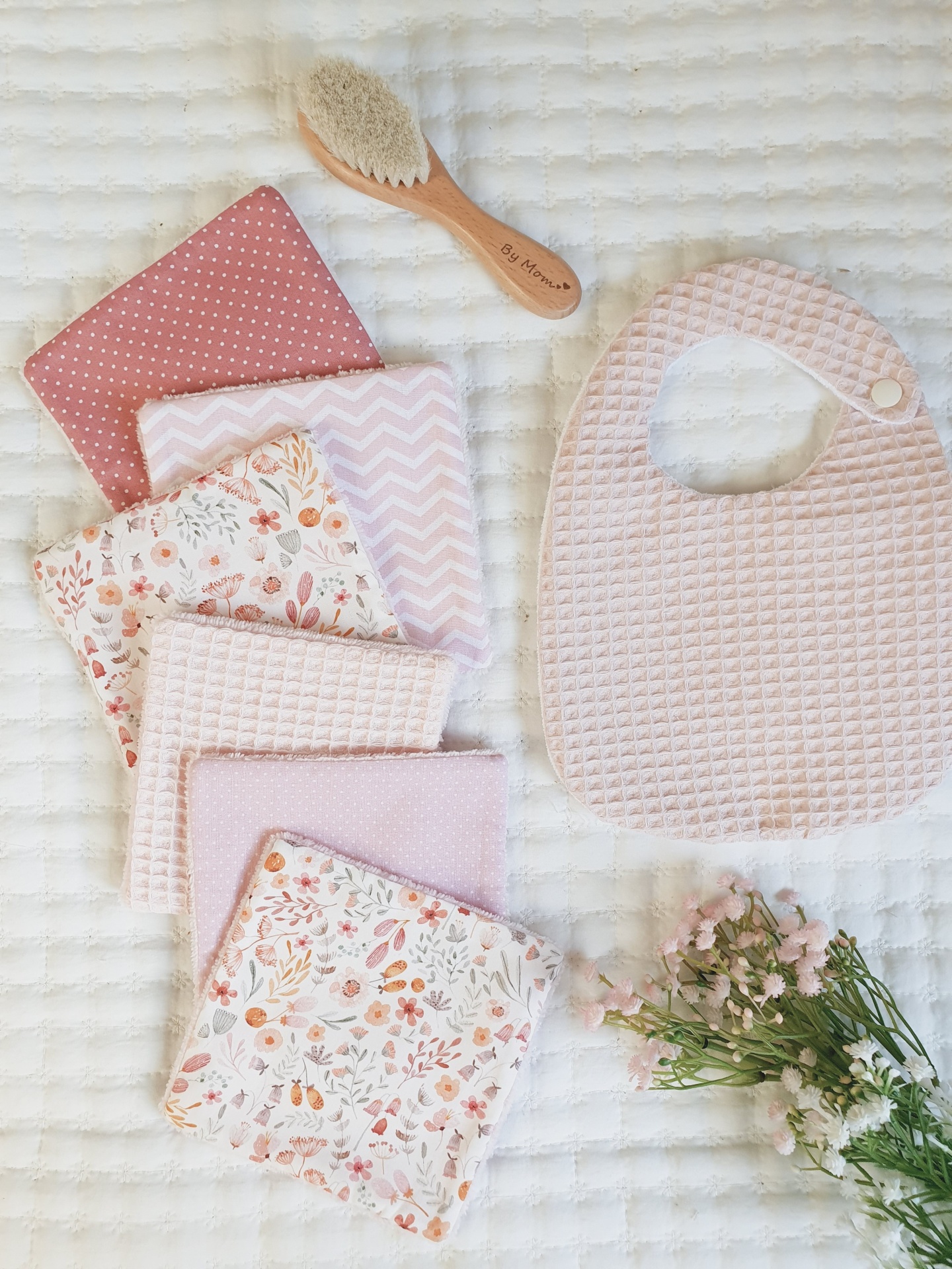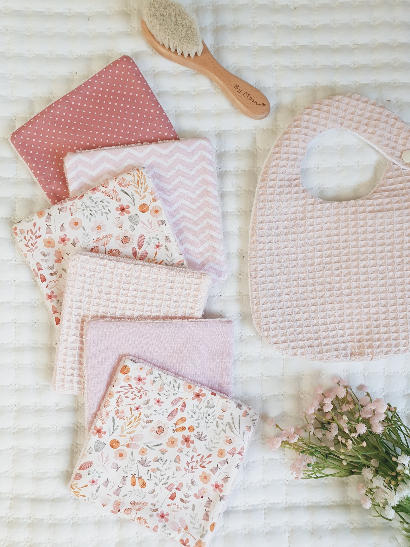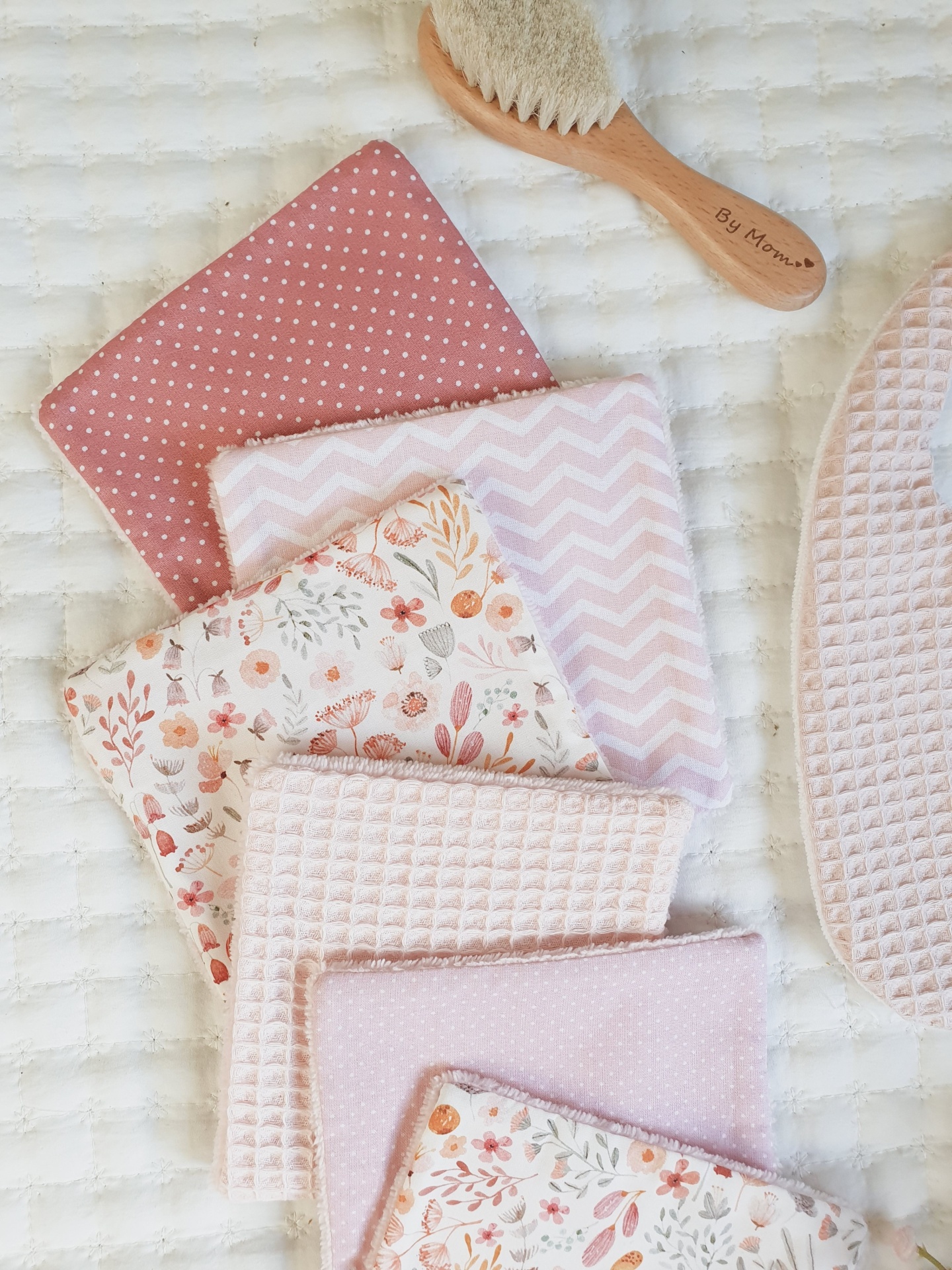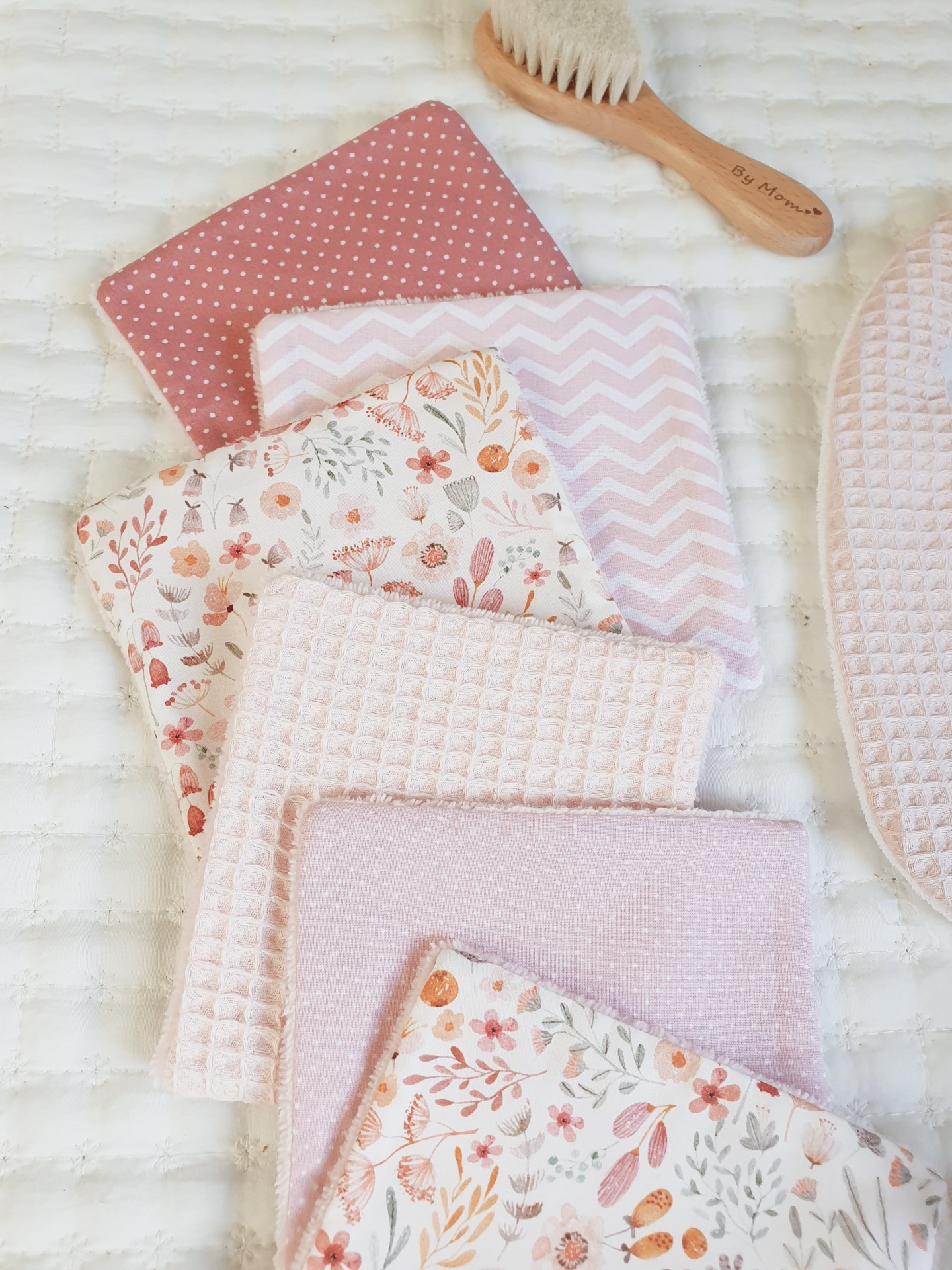 Toalhitas pack 10 14,50 € Desconto de %. Partilhar Comprar Contactar Conjunto de 6 toalhitas em tecido 100% algodão e tecido turco de bambu super macio e absorvente. Muito úteis para deixar o rabinho sempre seco e limpo, evitando as assaduras. Duráveis e reutilizáveis, são um produto sustentável e ecológico. Medidas 13x13cm cada. Também podem ser usadas por vocês, mamãs. Muito boas para limpar o rosto e fazerem a vossa rotina de limpeza da pele. Cores: verde água, malva, rosa claro