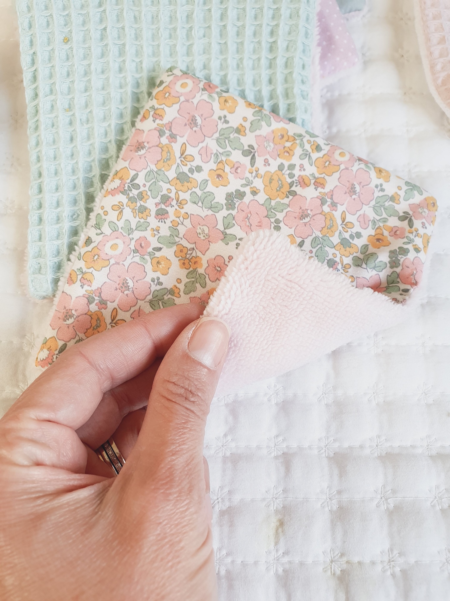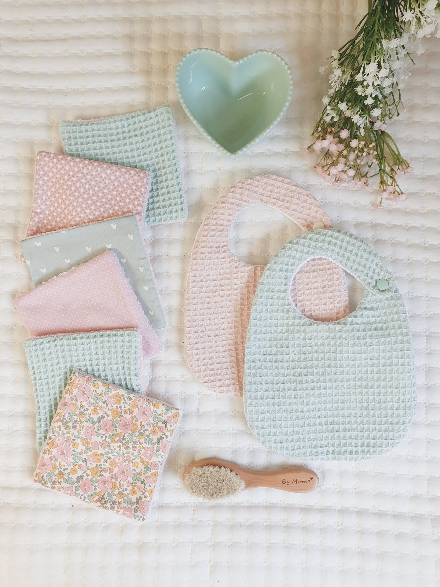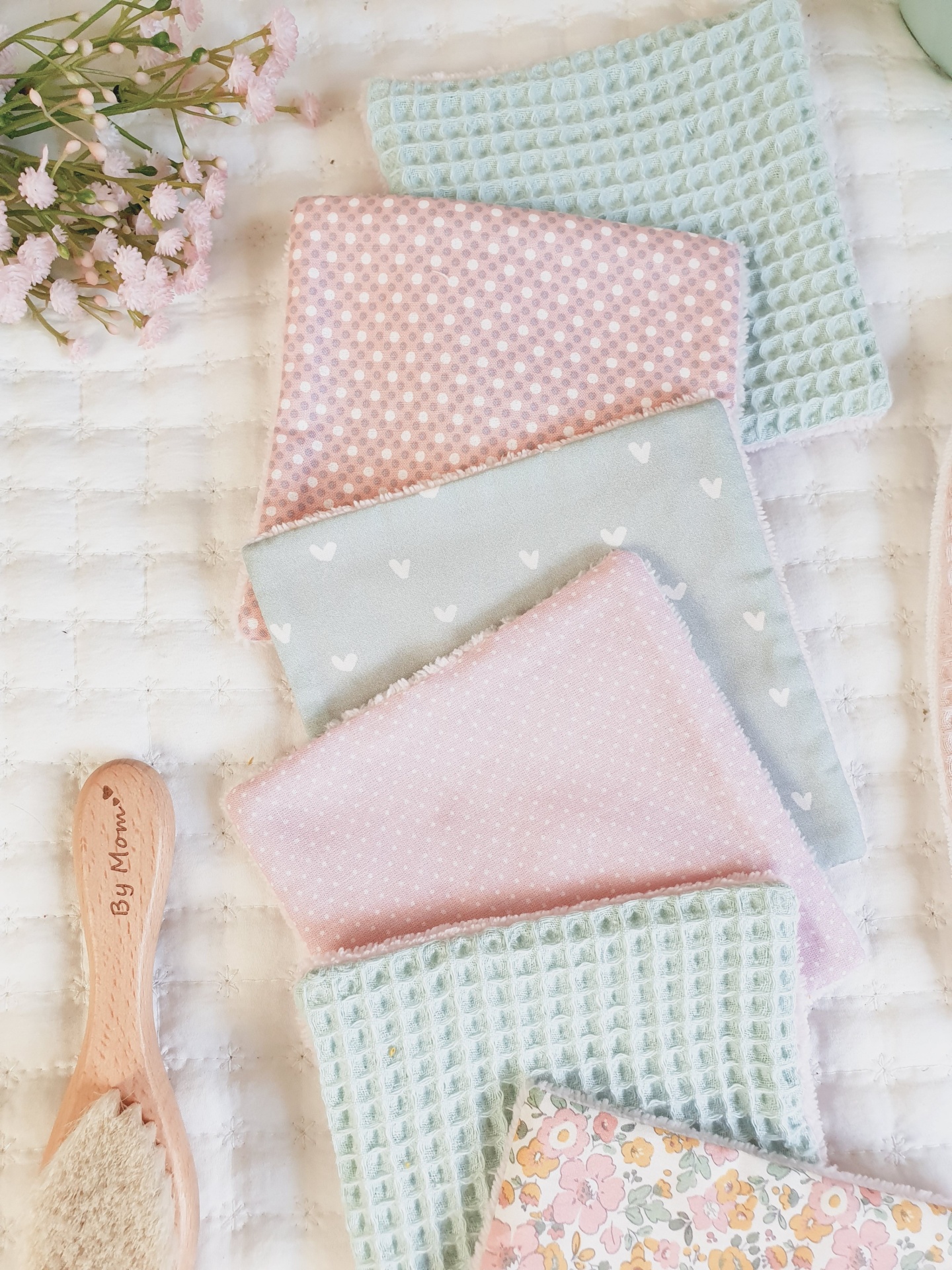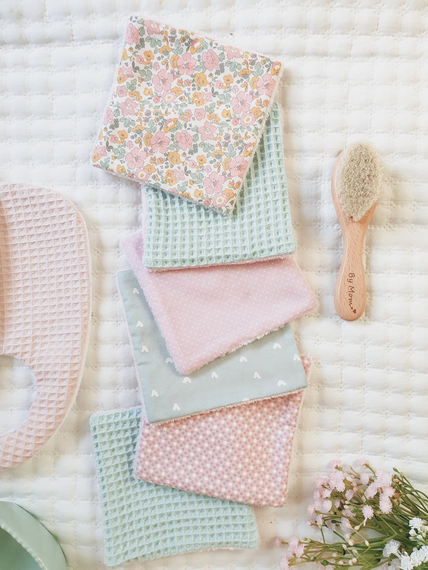 Toalhitas pack 11 14,50 € Desconto de %. Partilhar Comprar Contactar Conjunto de 6 toalhitas em tecido 100% algodão e tecido turco de bambu super macio e absorvente. Muito úteis para deixar o rabinho sempre seco e limpo, evitando as assaduras. Duráveis e reutilizáveis, são um produto sustentável e ecológico. Medidas 13x13cm cada. Também podem ser usadas por vocês, mamãs. Muito boas para limpar o rosto e fazerem a vossa rotina de limpeza da pele. Cores: verde água, malva, rosa claro, verde água