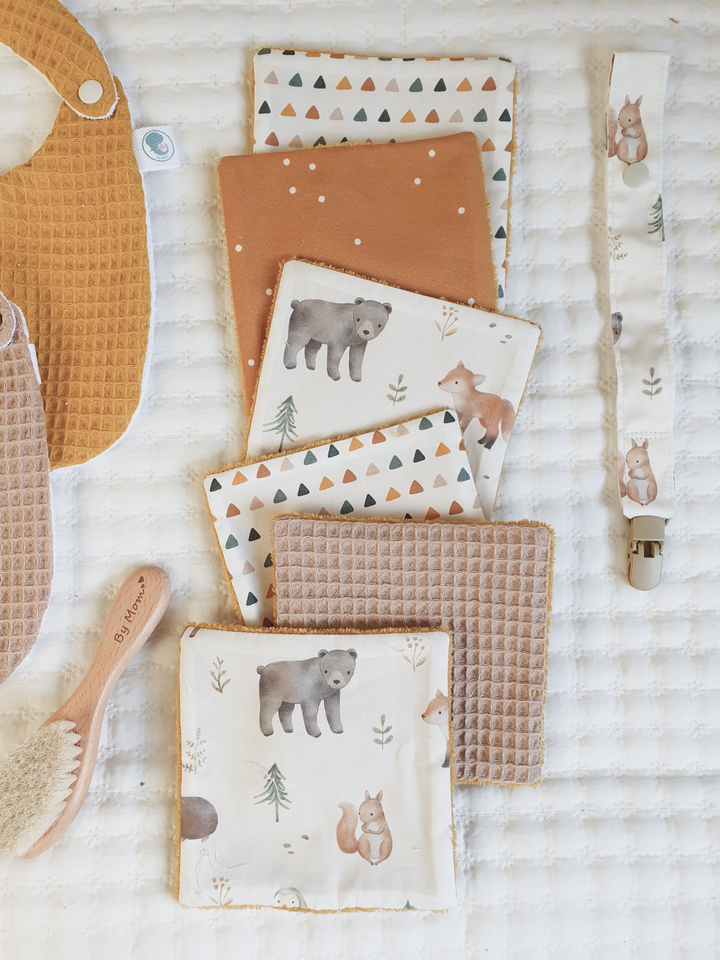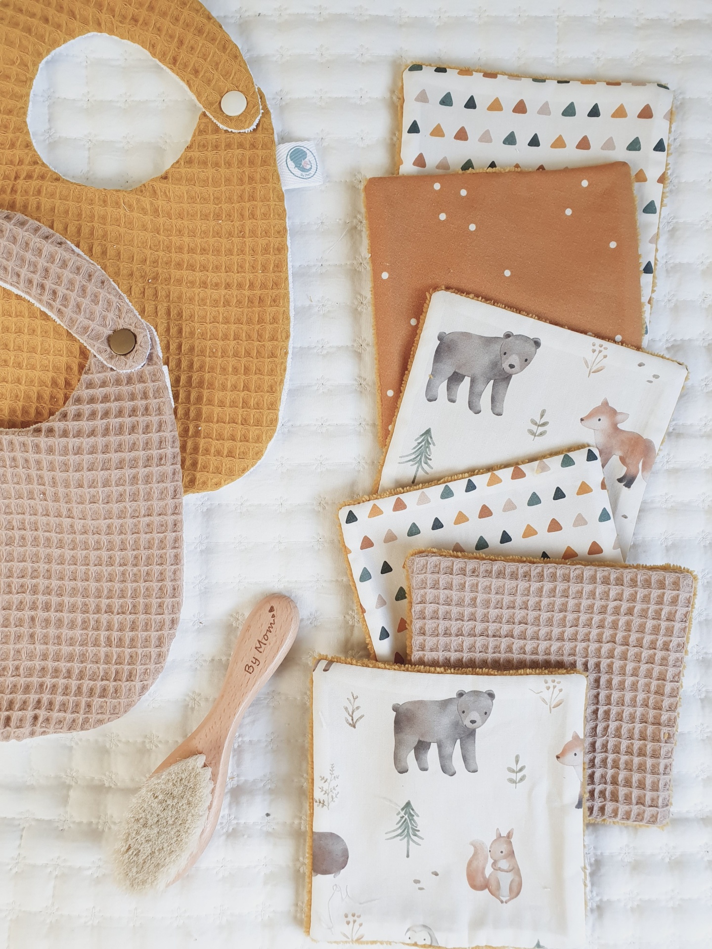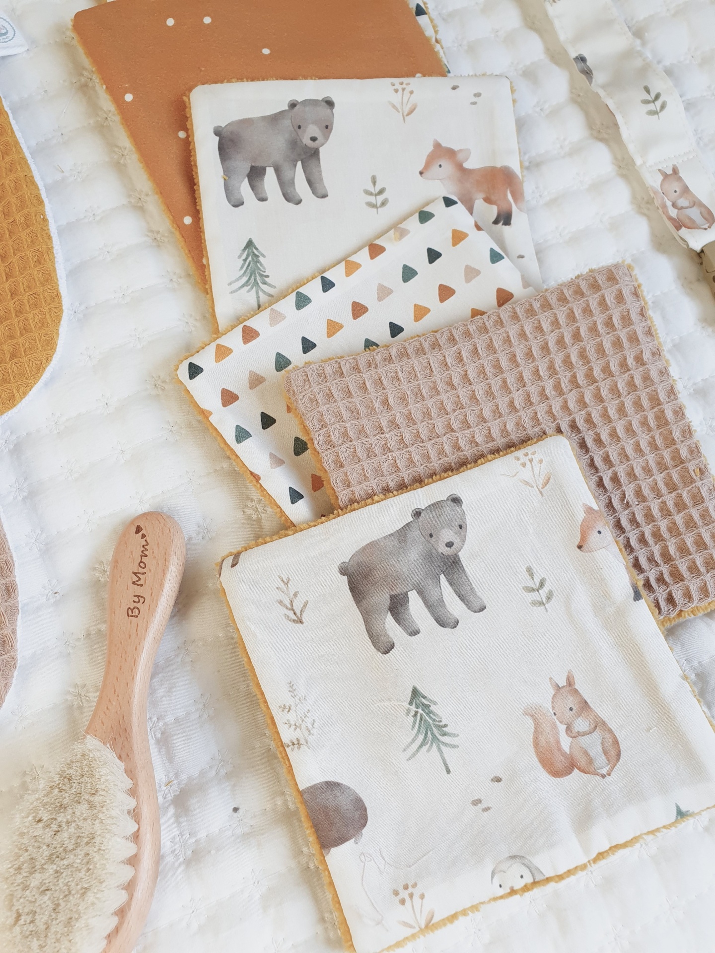 Toalhitas pack 12 14,50 € Desconto de %. Partilhar Comprar Contactar Conjunto de 6 toalhitas em tecido 100% algodão e tecido turco de bambu super macio e absorvente. Muito úteis para deixar o rabinho sempre seco e limpo, evitando as assaduras. Duráveis e reutilizáveis, são um produto sustentável e ecológico. Medidas 13x13cm cada. Também podem ser usadas por vocês, mamãs. Muito boas para limpar o rosto e fazerem a vossa rotina de limpeza da pele. Cores: castanho, mostarda, bege, cru