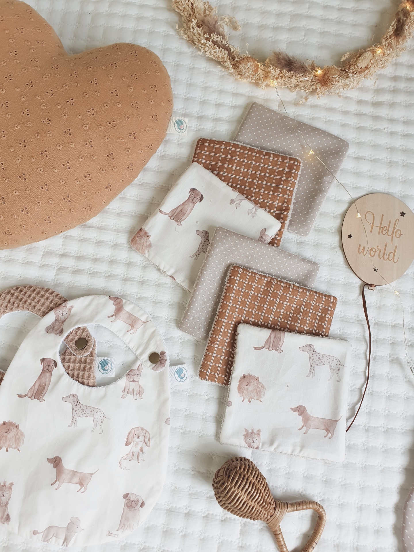 Toalhitas pack 14 14,50 € Desconto de %. Partilhar O produto encontra-se sem stock. Conjunto de 6 toalhitas em tecido 100% algodão e tecido turco de bambu super macio e absorvente. Muito úteis para deixar o rabinho sempre seco e limpo, evitando as assaduras. Duráveis e reutilizáveis, são um produto sustentável e ecológico. Medidas 13x13cm cada. Também podem ser usadas por vocês, mamãs. Muito boas para limpar o rosto e fazerem a vossa rotina de limpeza da pele. Cores: castanho, mostarda, bege, cru