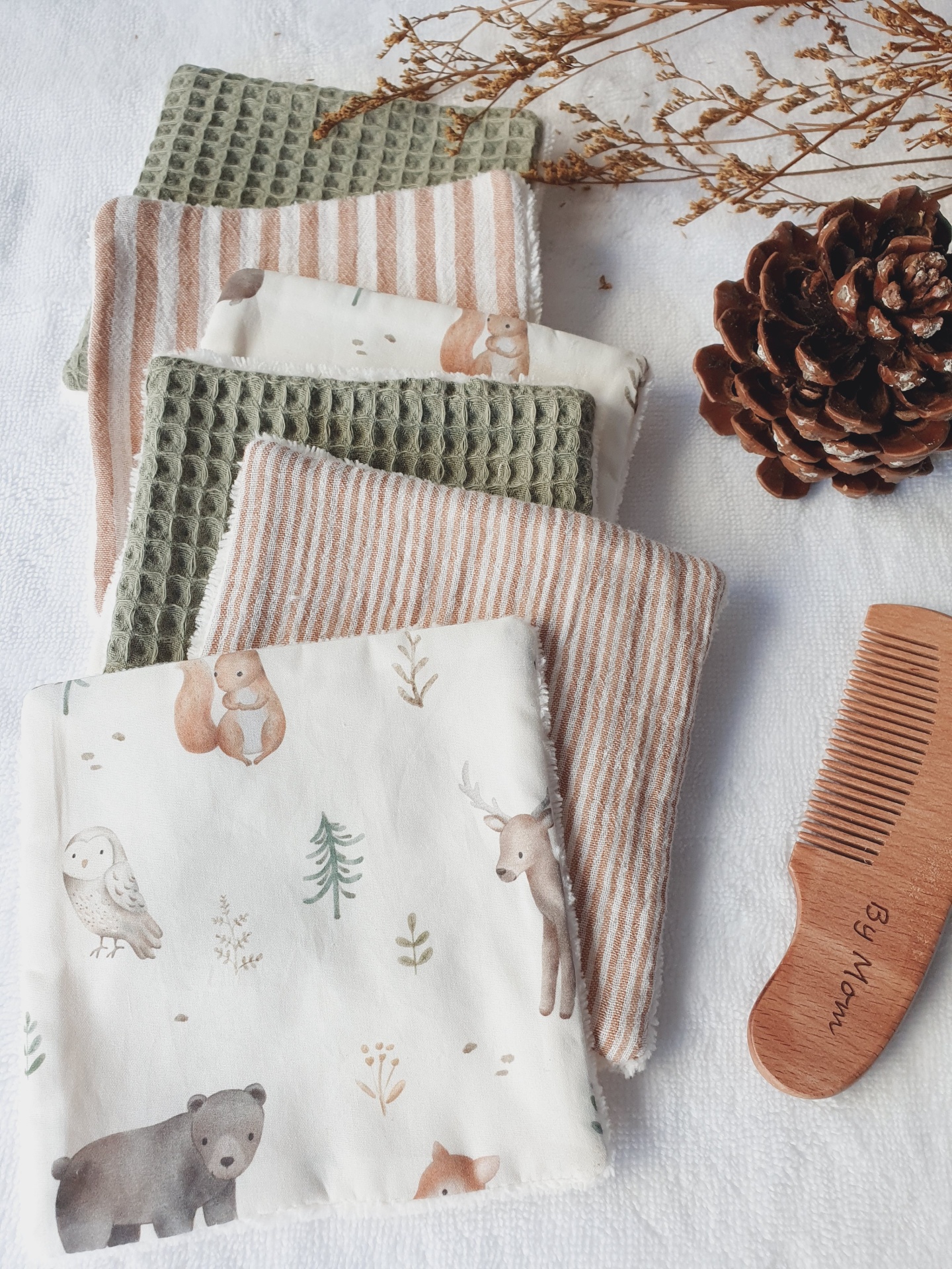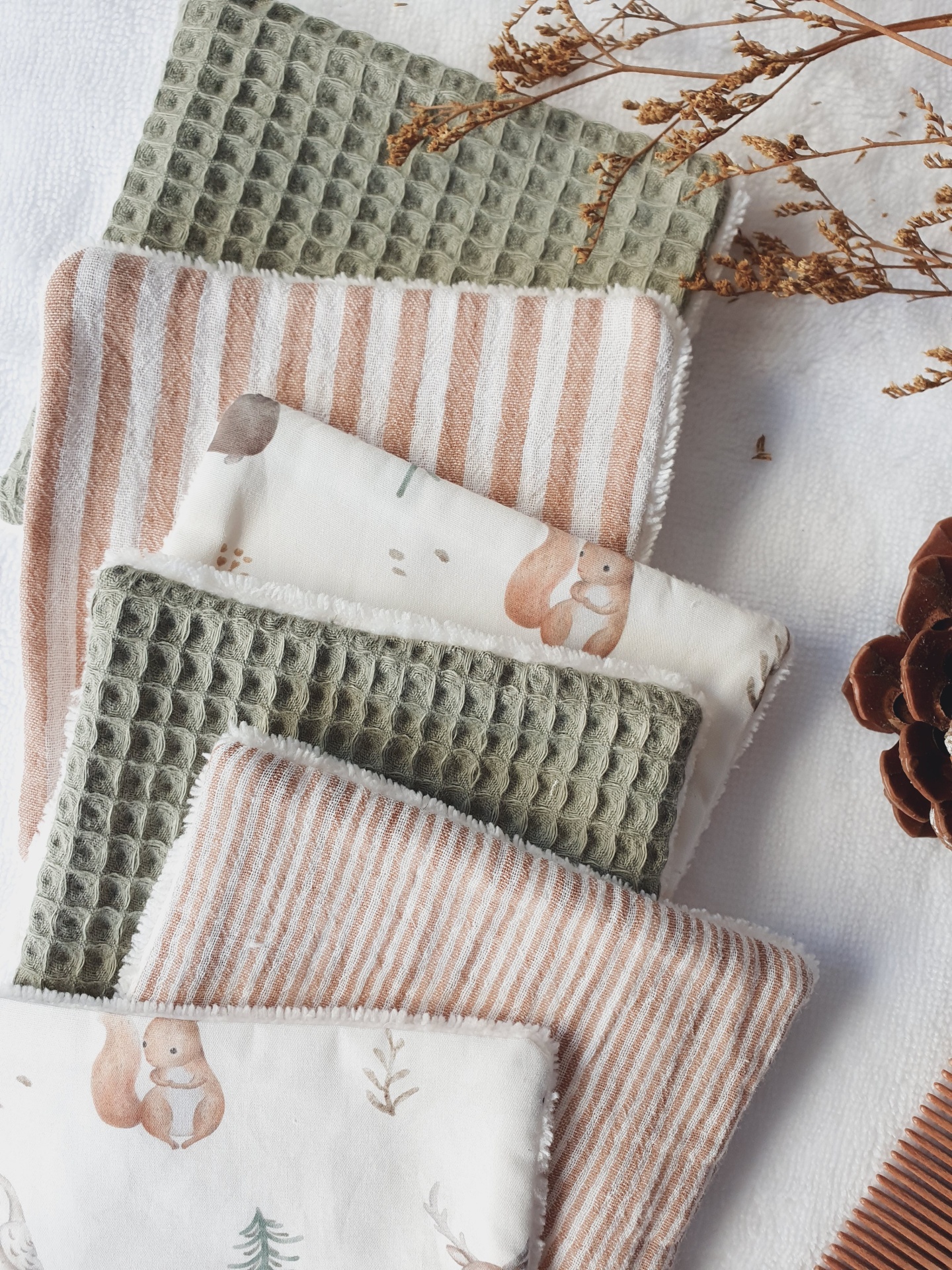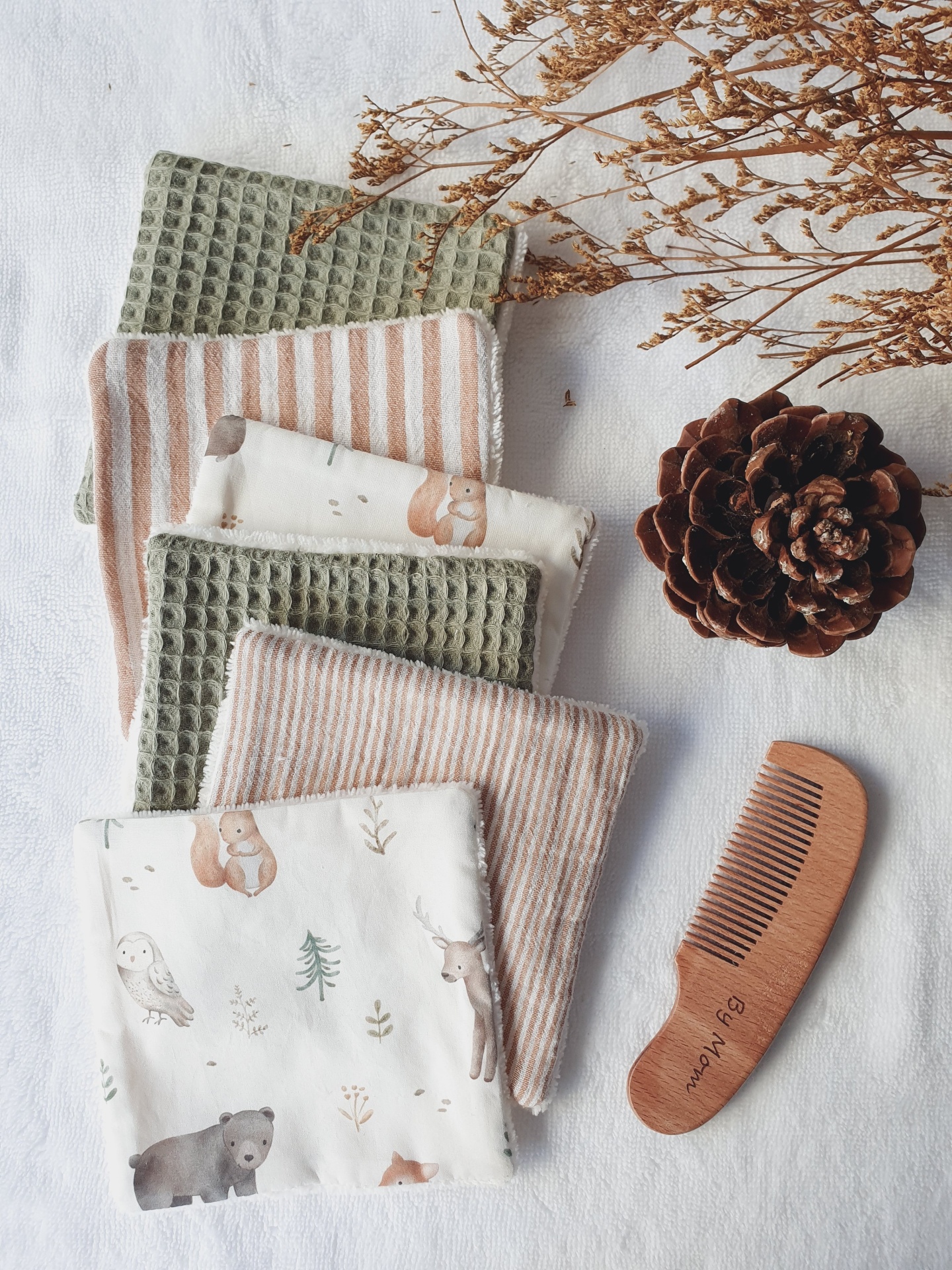 Toalhitas pack 18 14,50 € Desconto de %. Partilhar Comprar Contactar Conjunto de 6 toalhitas em tecido 100% algodão e tecido turco de bambu super macio e absorvente. Muito úteis para deixar o rabinho sempre seco e limpo, evitando as assaduras. Duráveis e reutilizáveis, são um produto sustentável e ecológico. Medidas 13x13cm cada. Também podem ser usadas por vocês, mamãs. Muito boas para limpar o rosto e fazerem a vossa rotina de limpeza da pele. Cores: azuis