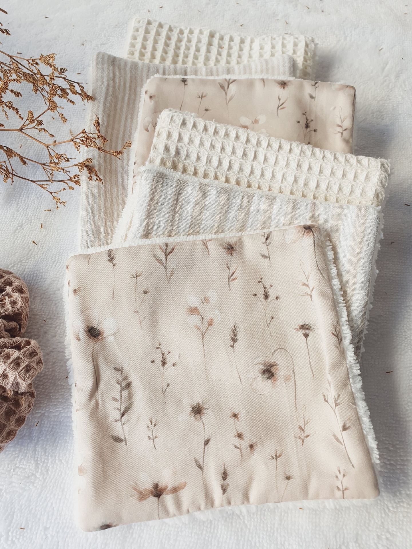 Toalhitas pack 22 14,50 € Desconto de %. Partilhar Comprar Contactar Conjunto de 6 toalhitas em tecido 100% algodão e tecido turco de bambu super macio e absorvente. Muito úteis para deixar o rabinho sempre seco e limpo, evitando as assaduras. Duráveis e reutilizáveis, são um produto sustentável e ecológico. Medidas 13x13cm cada. Também podem ser usadas por vocês, mamãs. Muito boas para limpar o rosto e fazerem a vossa rotina de limpeza da pele. Cores: azuis