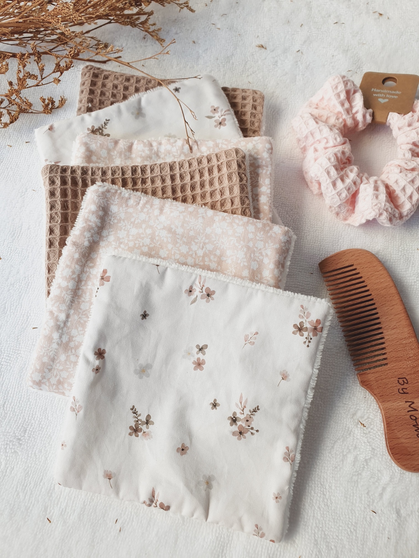 Toalhitas pack 23 14,50 € Desconto de %. Partilhar Comprar Contactar Conjunto de 6 toalhitas em tecido 100% algodão e tecido turco de bambu super macio e absorvente. Muito úteis para deixar o rabinho sempre seco e limpo, evitando as assaduras. Duráveis e reutilizáveis, são um produto sustentável e ecológico. Medidas 13x13cm cada. Também podem ser usadas por vocês, mamãs. Muito boas para limpar o rosto e fazerem a vossa rotina de limpeza da pele. Cores: azuis