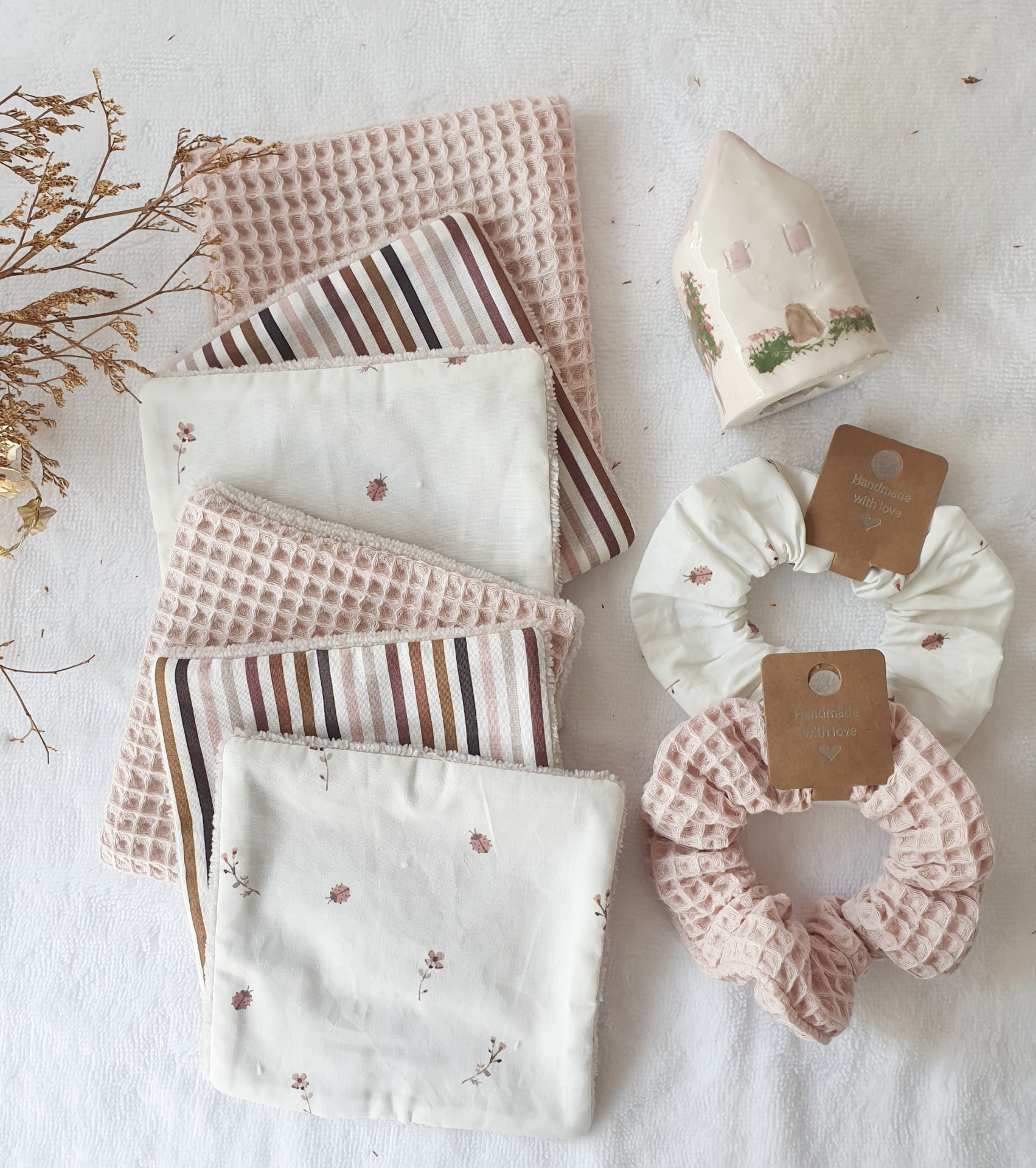 Toalhitas pack 32 14,50 € Desconto de %. Partilhar Comprar Contactar Conjunto de 6 toalhitas em tecido 100% algodão e tecido turco de bambu super macio e absorvente. Muito úteis para deixar o rabinho sempre seco e limpo, evitando as assaduras. Duráveis e reutilizáveis, são um produto sustentável e ecológico. Medidas 13x13cm cada. Também podem ser usadas por vocês, mamãs. Muito boas para limpar o rosto e fazerem a vossa rotina de limpeza da pele. Cores: azuis
