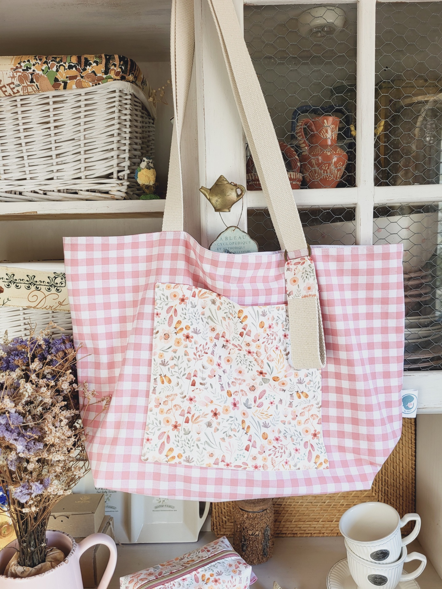 Tote bag vichy rosa 39,00 € Desconto de %. Partilhar O produto encontra-se sem stock. A tote bag perfeita para este Verão! Para o campo, para a praia ou para o dia-a-dia, vai querer tê-la sempre consigo. Com dois bolsos bastante capientes - um no interior e outro no exterior - e com forro 100% algodão. Medidas: 50x38x17cm. Composição: 100% algodão Lavagem: à máquina ou à mão a temperatura não superior a 40graus. Pode passar a ferro - roupa de algodão. Tags rosaVichytotebagformomcottagedecorverãoxadrezfloralcampopraiamala passeio