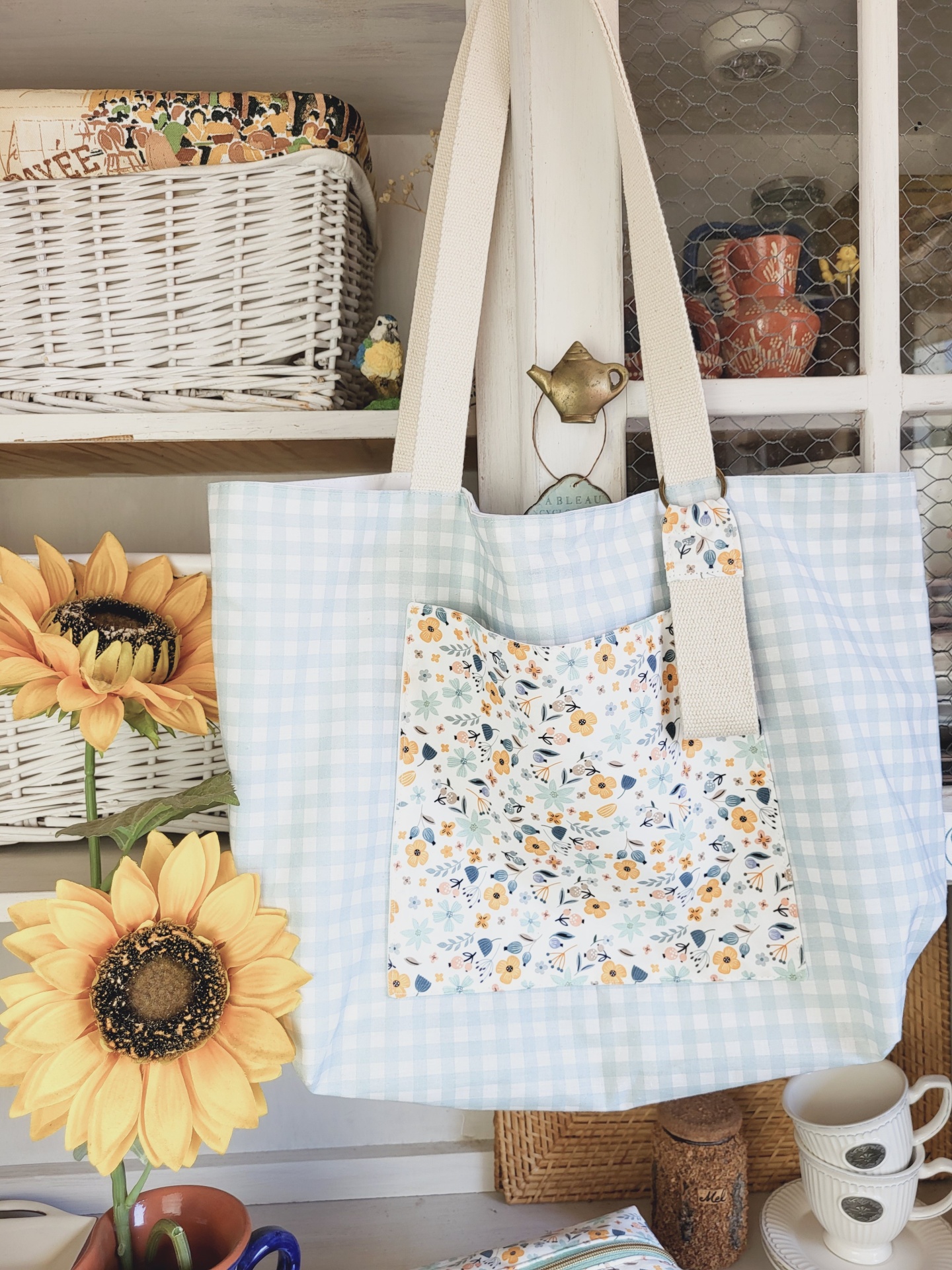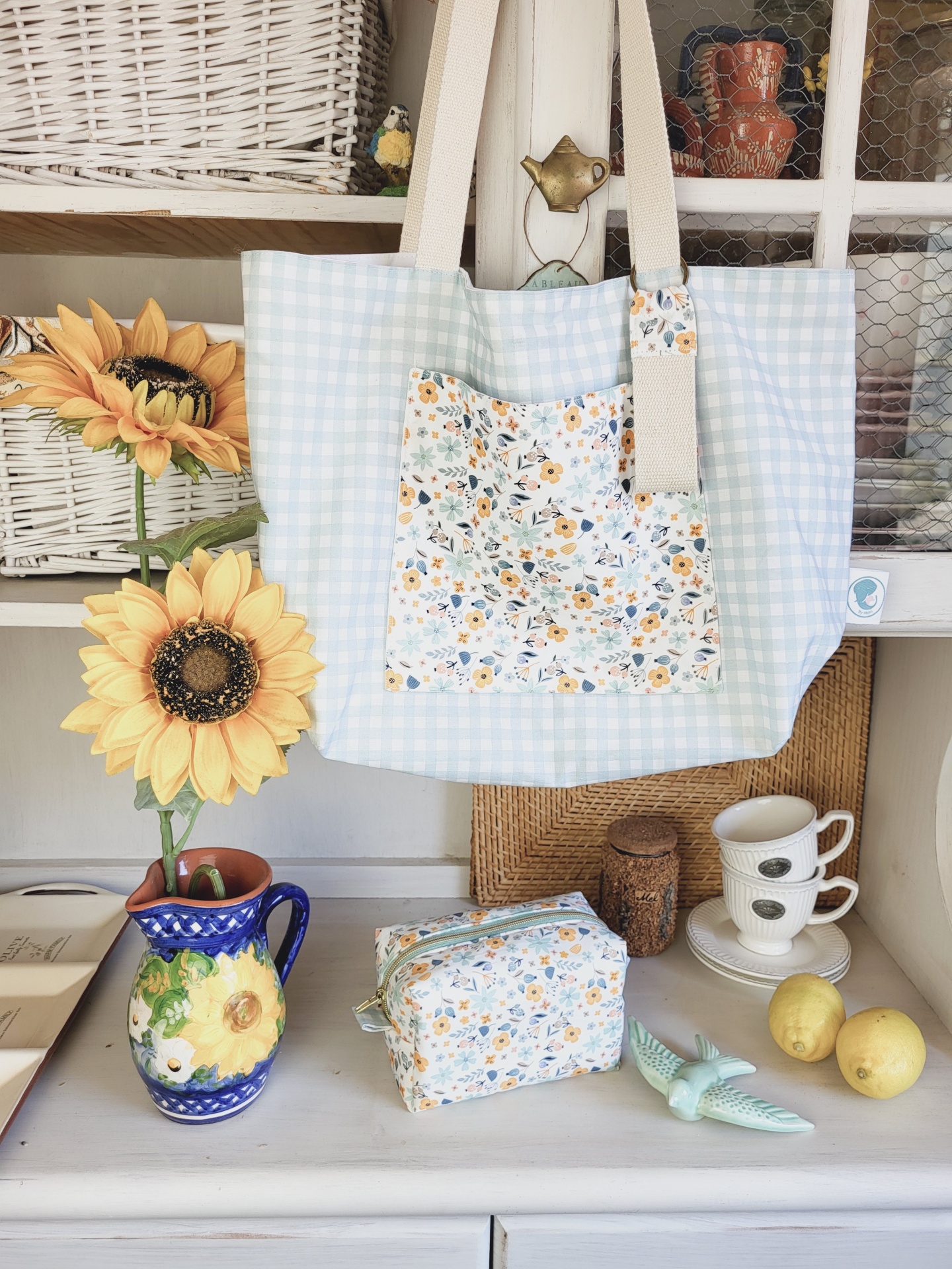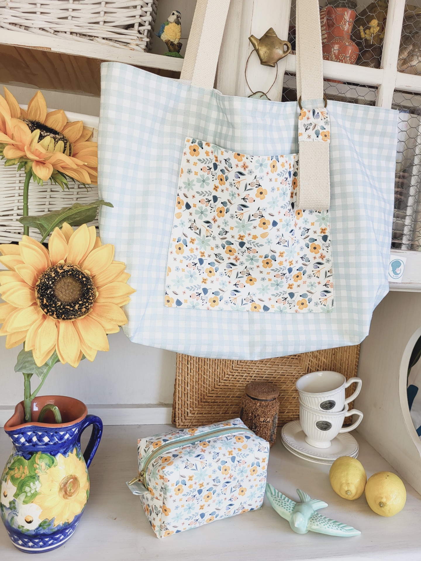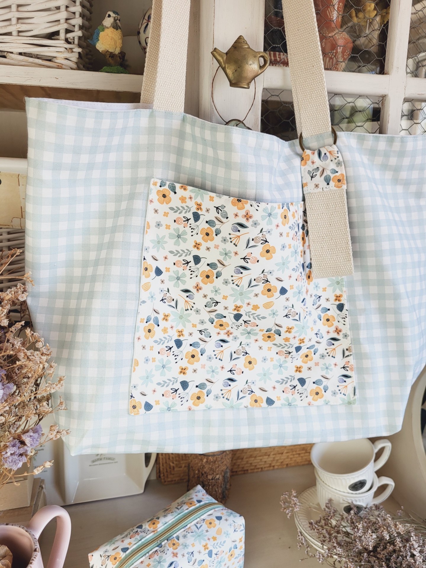 Tote bag vichy verde água 39,00 € Desconto de %. Partilhar O produto encontra-se sem stock. A tote bag perfeita para este Verão! Para o campo, para a praia ou para o dia-a-dia, vai querer tê-la sempre consigo. Com dois bolsos bastante capientes - um no interior e outro no exterior - e com forro 100% algodão. Medidas: 50x38x17cm. Composição: 100% algodão Lavagem: à máquina ou à mão a temperatura não superior a 40graus. Pode passar a ferro - roupa de algodão. Tags verde águaVichyxadreztotebagverãocampopraiamala de praiamala passeio Características